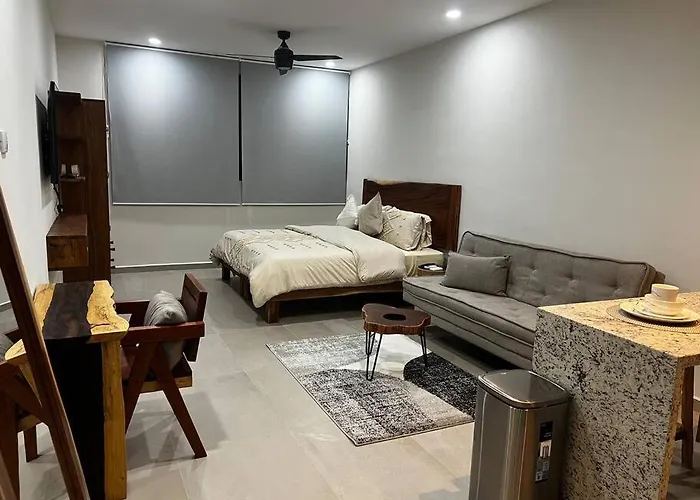 Als u in de Zama wijk van Tulum Pueblo wilt verblijven, is 1-slaapkamer Solum Luxury Condos een goede keuze, binnen 10 rijden van het Playa Tulum. Het 38 m^2 grote appartement bevat een zwembad en een terras voor het comfort van de gasten.